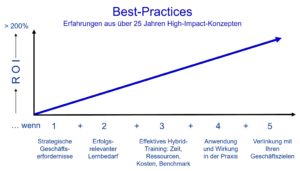 Das „A und O“ einer Vertriebsstrategie ist deren erfolgreiche Umsetzung durch Ihre Mitarbeiter. Um hohe Wirkungen (bis über 200% ROI) bei Ihren Strategie- und Trainingskonzepten zu erreichen, sind die folgenden 5 Aspekte nachweislich erfolgsrelevant (Studien gerne bei uns anzufordern):